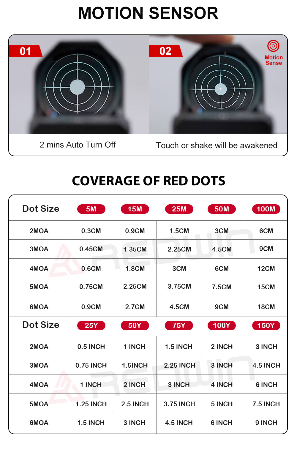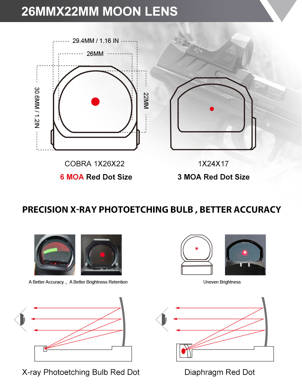 Red Win HD Cobra 1x26x22 6MOA 2P Red Dot Sight Moon Lens 50000 hrs Shake Awaked 2min Auto Shut Off Pistol Red Dot for GLOCK 9mm