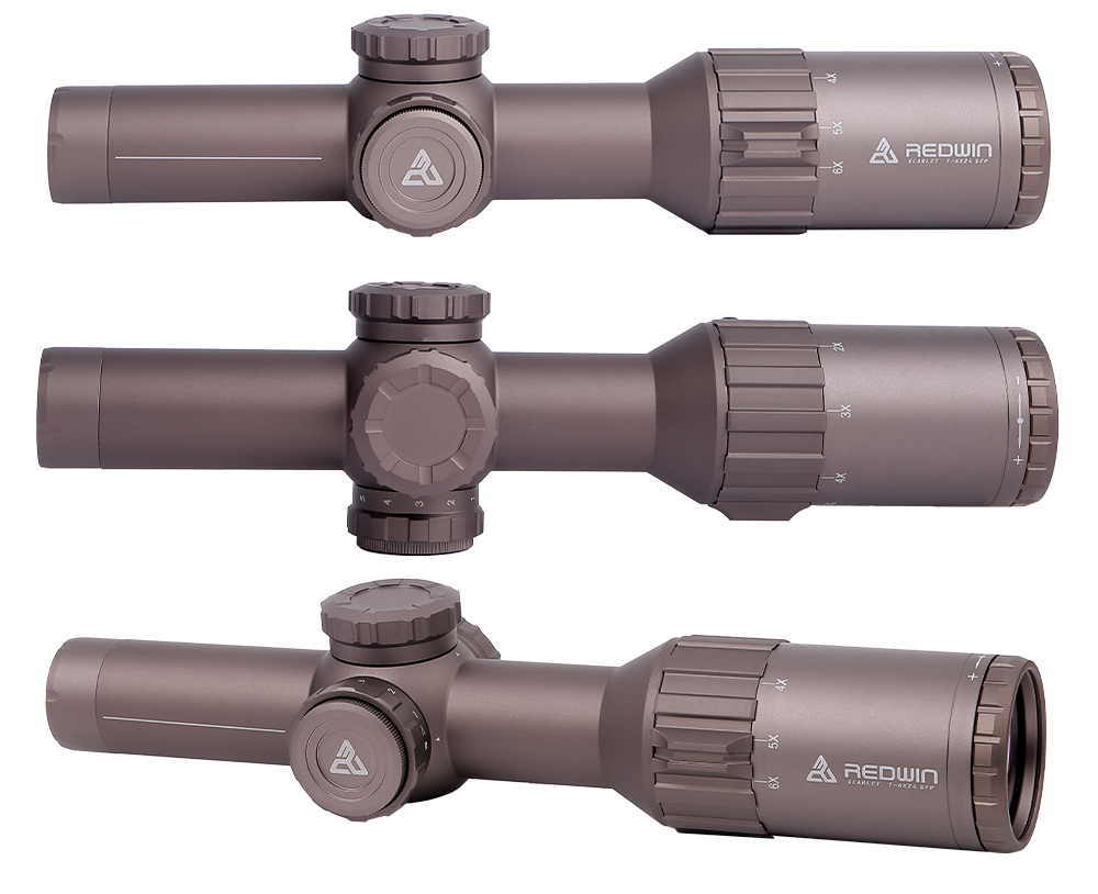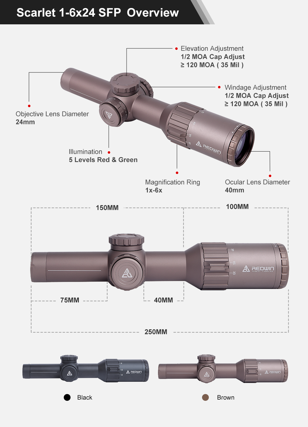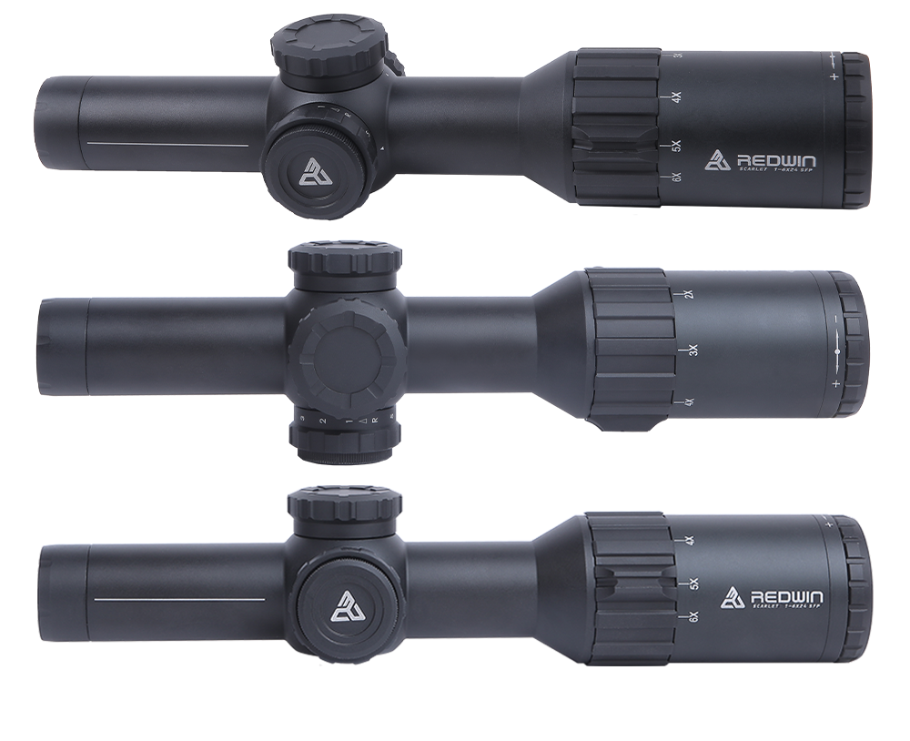 Red Win 1/2MOA Delta Wing Reticle HD AR Lens Cap Adjust 5 Level G&R Quick Acquisition CQB Tactical Scarlet 1-6x24SFP Riflescope