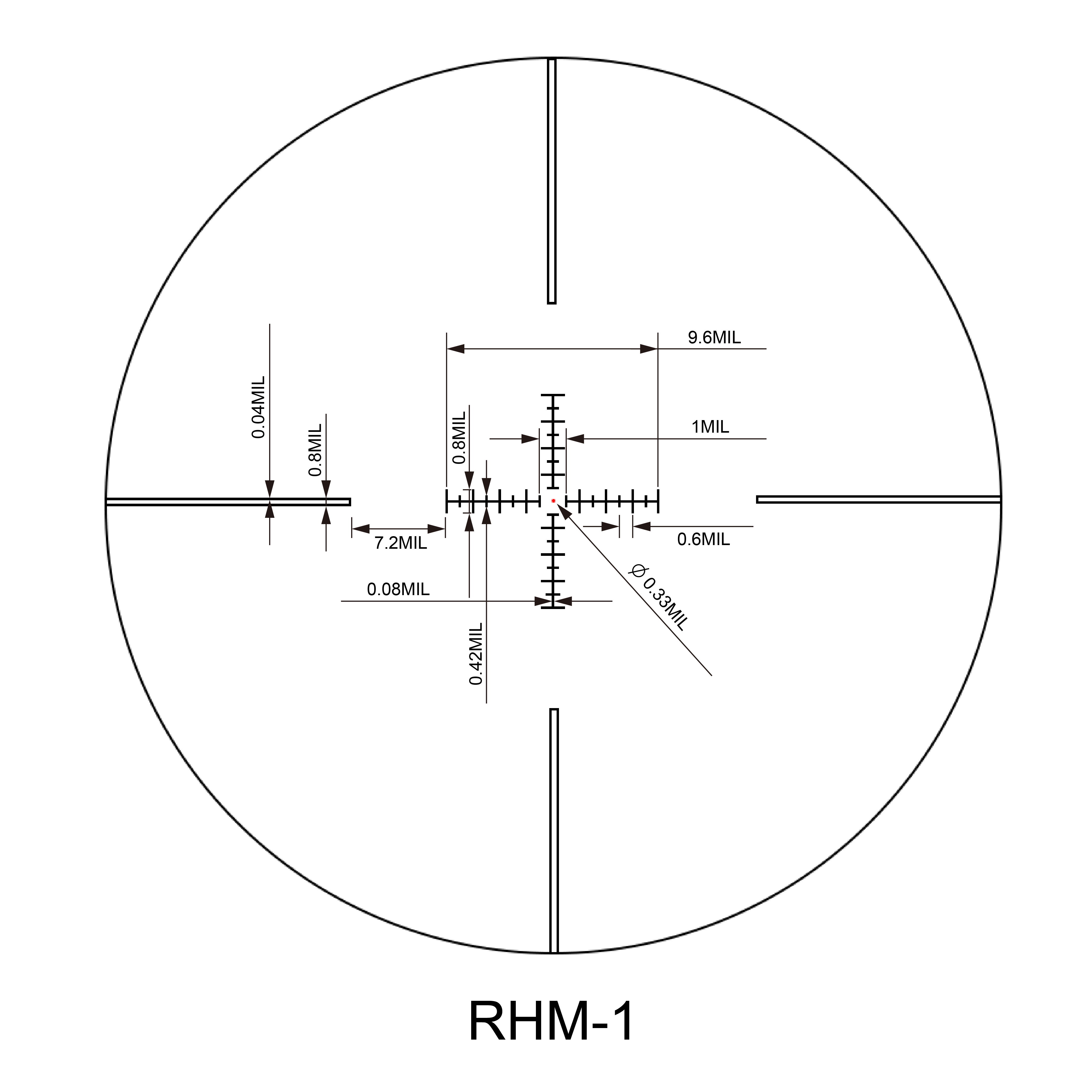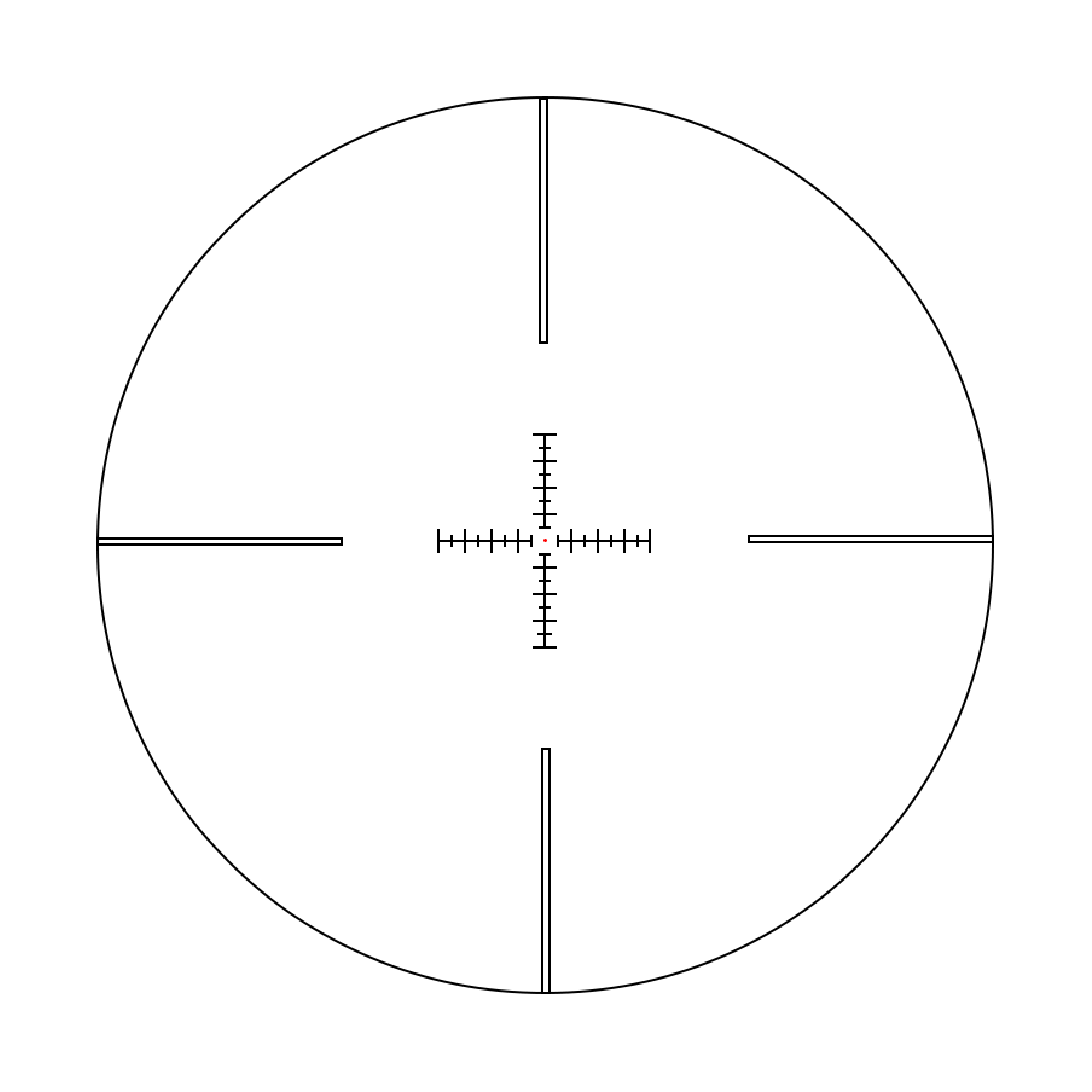 Designed by the professional shooters based on 5.56 calibre, MOA + Custom Rangefinding BDC Reticle with wind holds (MRB-W) and scope systems provide high speed target acquisition with uncompromising quality and durability for shooters who need to engage targets from point-blank out to extended ranges. It features a 1MOA dot surrounded by a 4-MOA circle. Each small grid 1 MOA on the horizontal stadia. Rangefinding features with the squares in the upper right can be used for Rangefinding and it measures a custom height/width of 46cm (18”) from 300-500 meters. A 0.5 MOA Windage holds points to make it ideal for any setting from open desert to heavy cover and urban environments.