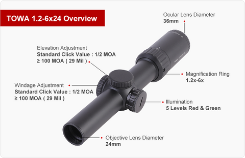 Red Win TOWA 1.2-6x24IR Hunting Rifle Scope 1/2MOA Adjust Low Profile German 4 Reticle R/G Illumination fit AR15 .223 .308 M4