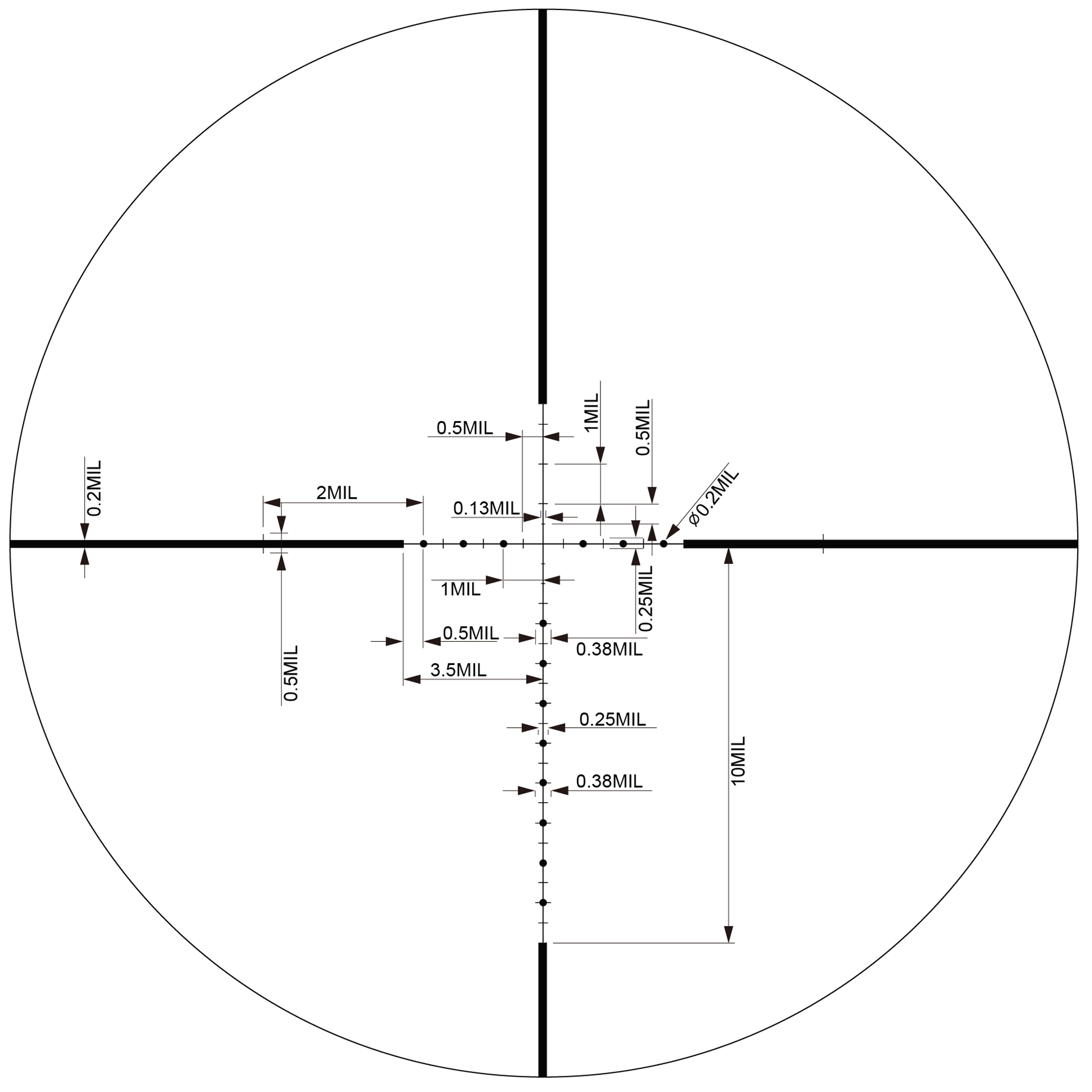 • プロの射手によって設計され、パッシブ距離測定とMILドットマークを組み合わせて、垂直線で最大13.5ミリラジアン(mradまたはmils)、水平線で7ミリラジアンのホールドオーバーを推定します。