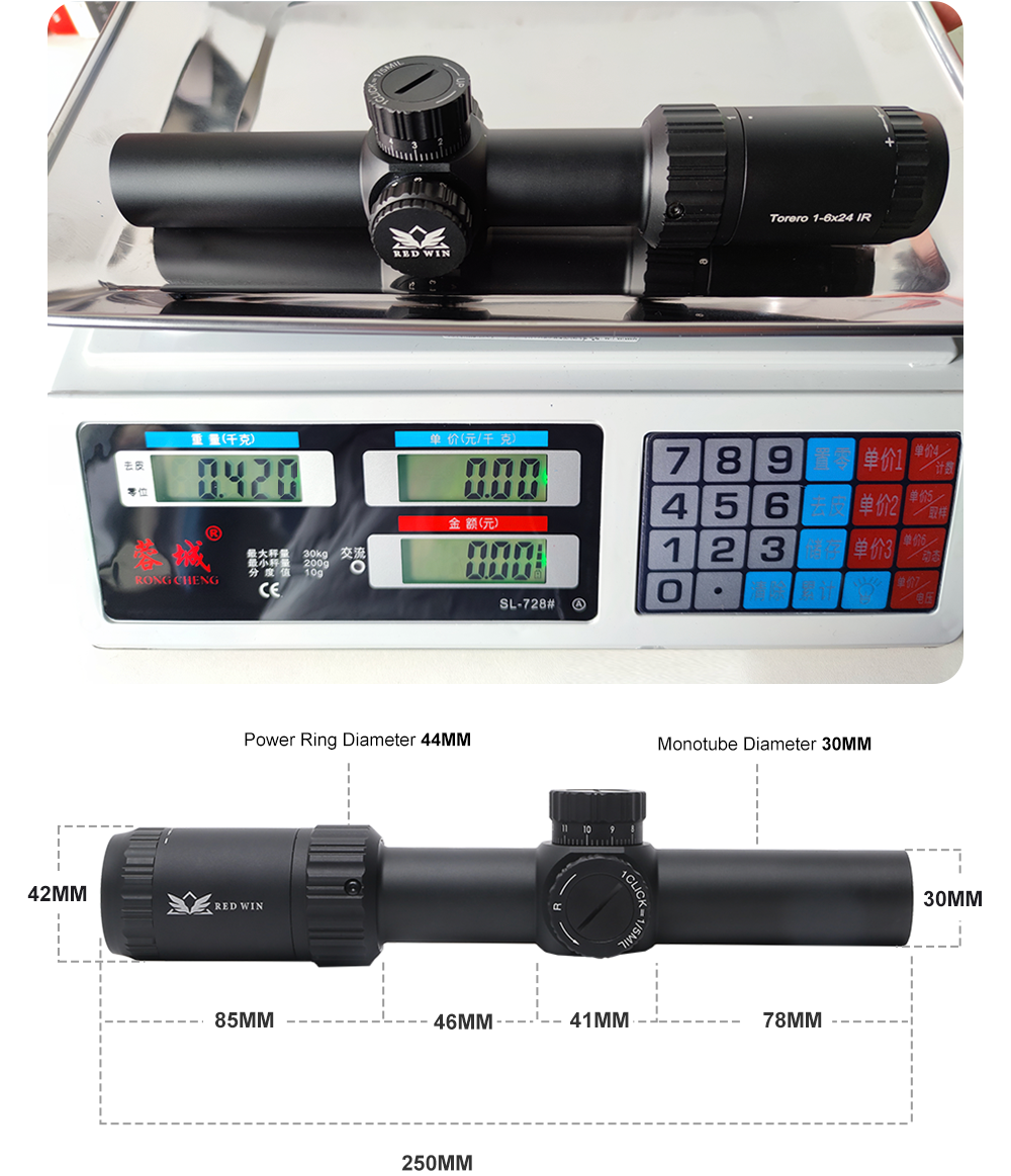 Red Win HD 1-6x24 スコープ CQB ライフルスコープ 1/2MOA タレット ゼロロックシステム付き 6 レベル レッド レンジファインディング BDC レチクル ウィンドホールド付き