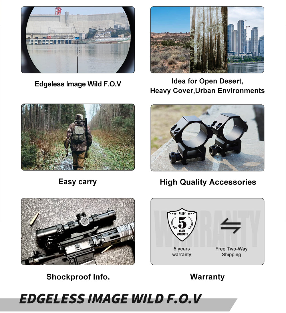1. 航空機グレードの窒素パージアルミ合金 30mm モノチューブ本体は O リングで密封され、頑丈な構造により耐衝撃性、防水性、防曇性が確保され、使用条件の範囲が大幅に広がります。傷や反射を防ぐ傷に強いマットブラックの表面は、スコープのメンテナンスと射手の隠れやすさに優れています。