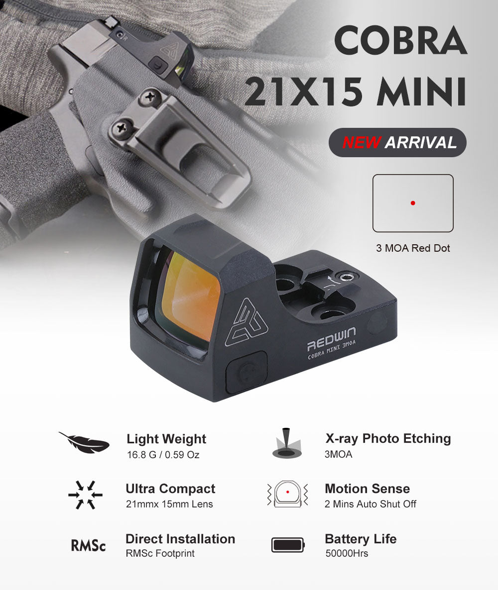 Red Win Cobra Mini 21x15 Red Dot Sight 3MOA RMS 로우 프로파일 50000시간 Shake Awaked 2 min ATO for Slim Pistol GLOCK G43X G48 9mm.