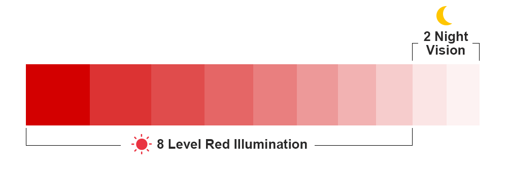 • Up to 50000 hours Battery life. 3 MOA dot size, 8 level red illumination, dot is visible in sunlight. 2 level extra low light brightness fit for night vision.